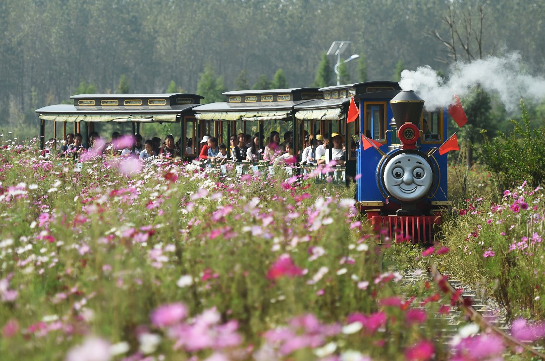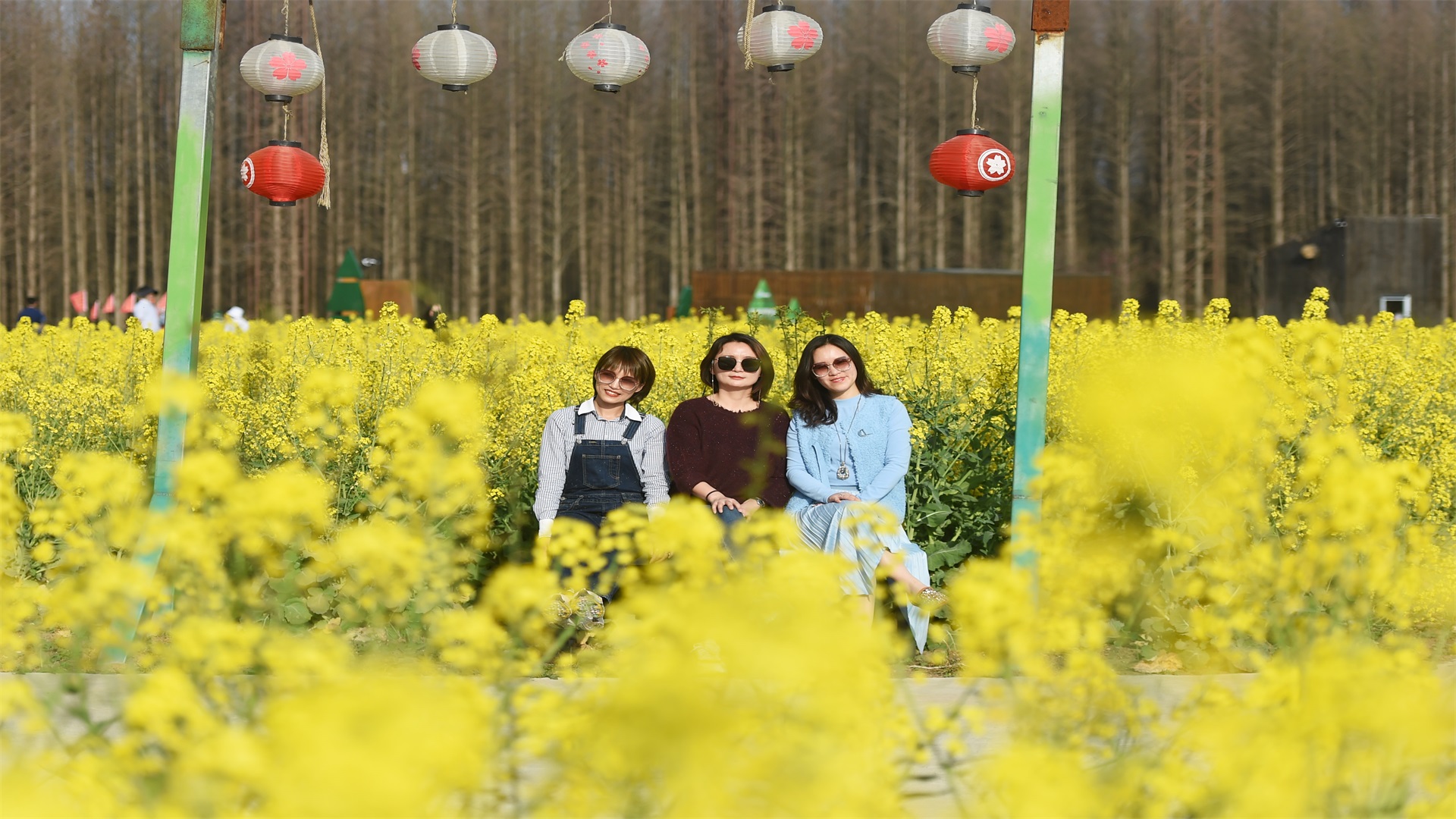 水上森林赏油菜花海、二月兰花海,体验童趣小火车